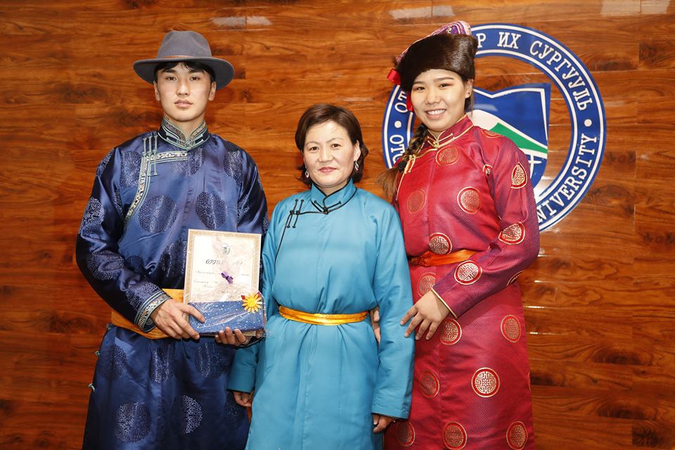 Тус өдөрлөгийн “Шилдэг үндэсний хувцастай анги”-аар Хүмүүнлэгийн сургуулиас сэтгүүл зүйн ангийн 4-р курс, ЭЗБУС-аас НЯ-БО ангийн 4 курс, Хууль зүйн сургуулиас Эрхзүйн ангийн 4-р курс шалгарсан бол “Отгонтэнгэрийн Юндэн, Нансалмаа” нараар АТҮ-ийн 1Б ангийн оюутан Д.Нямдорж, СӨБ-ын 2-р курсын н.Нямхишиг нар тус тус шалгарч өргөмжлөл үнэ бүхий зүйлийн эзэд боллоо.