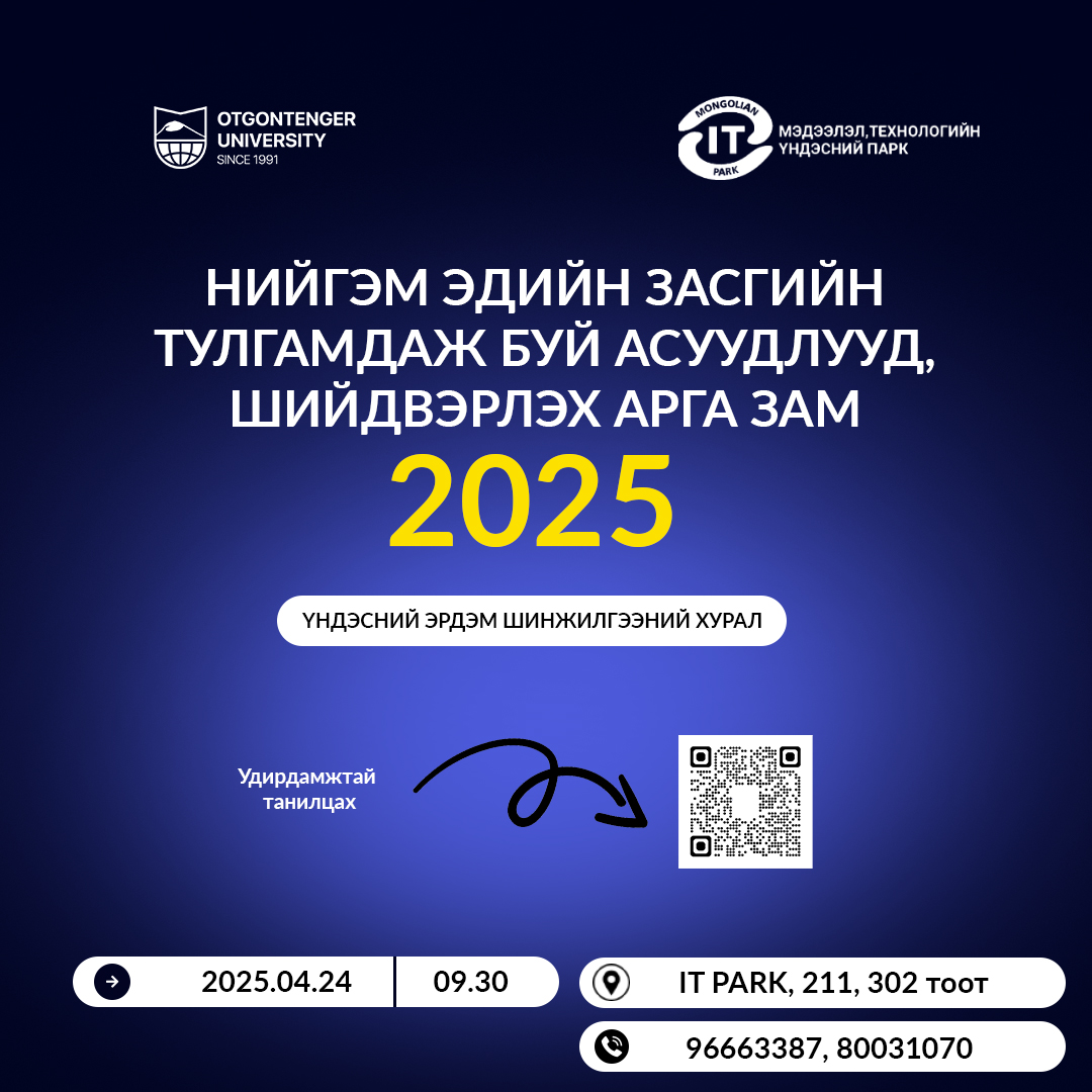 Эрхэм хүндэт судлаач, багш, эрдэмтэн таныг “Нийгэм эдийн засгийн тулгамдаж буй асуудлууд, шийдвэрлэх арга зам-2025” сэдэвт үндэсний хэмжээний эрдэм шинжилгээний хуралд оролцохыг урьж байна.