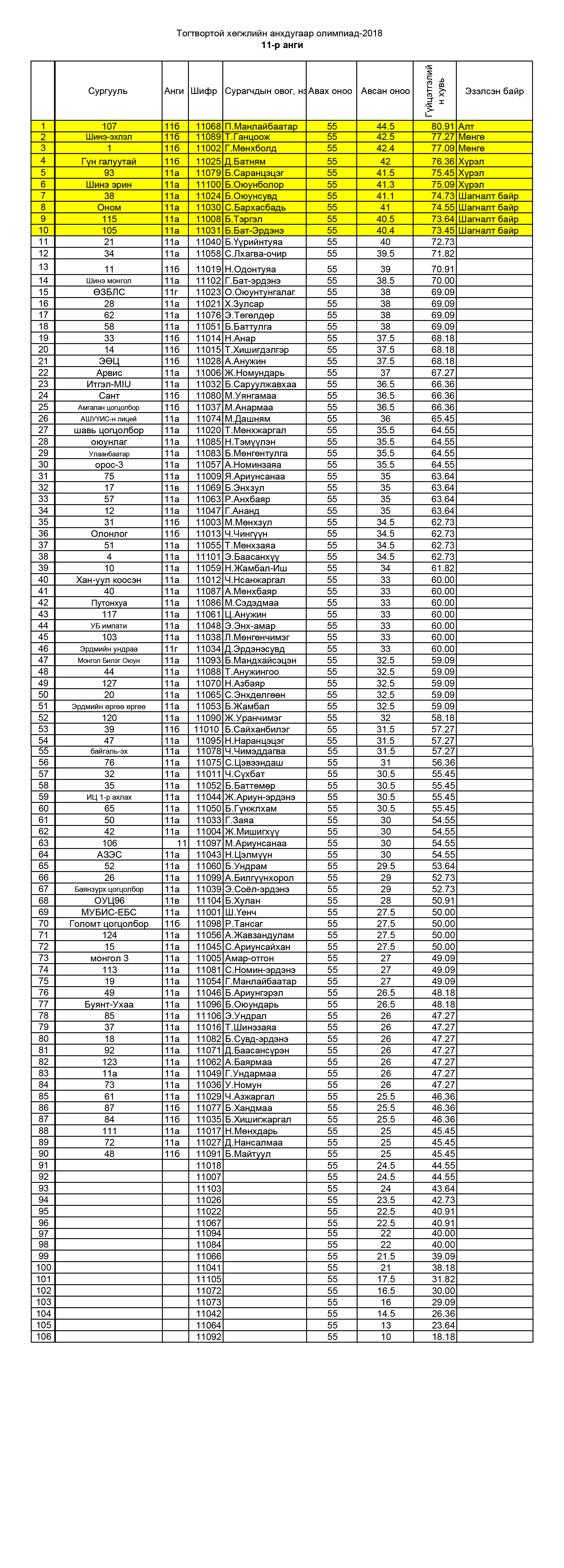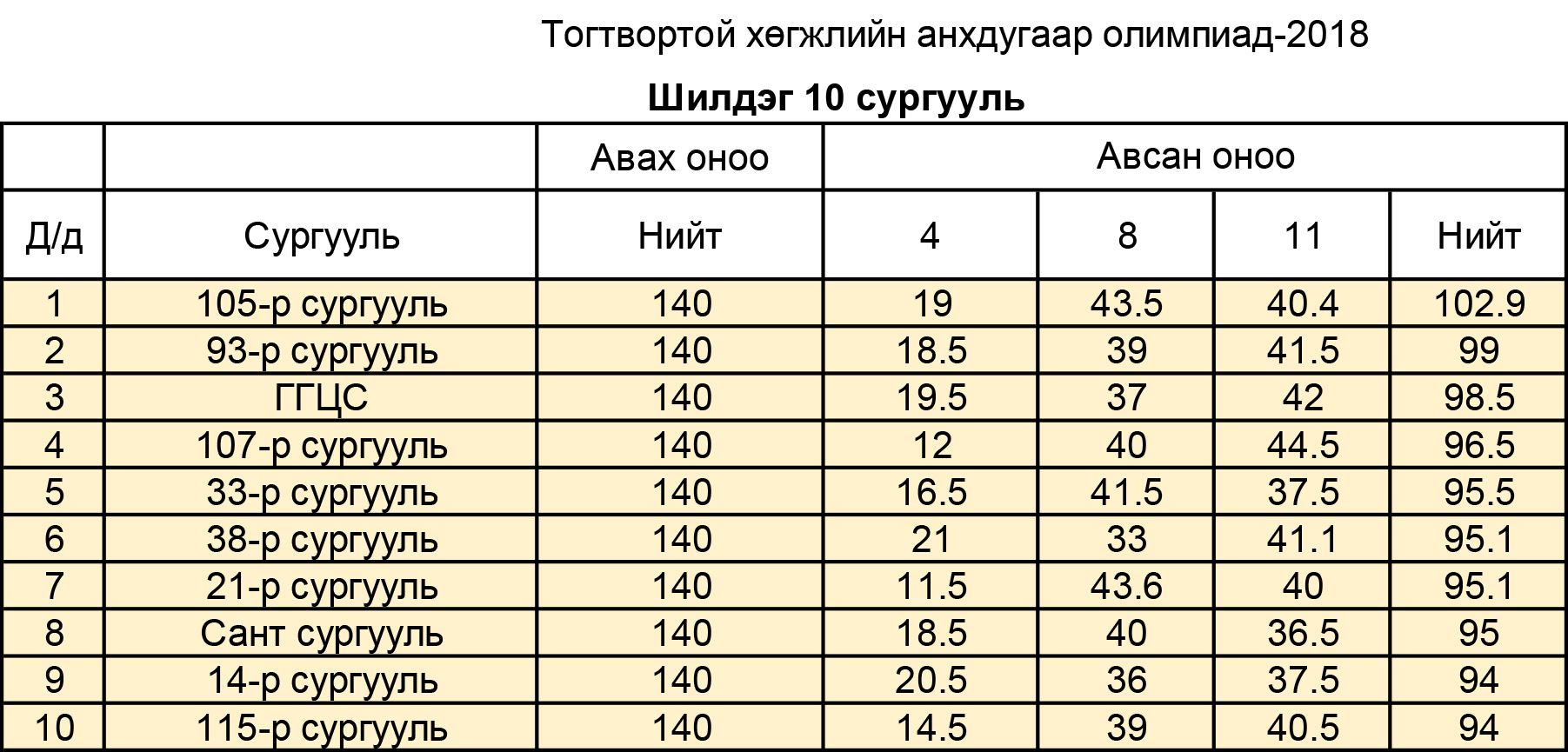 Тэргүүн байранд шалгарсан сурагчидад Отгонтэнгэр Их Сургуулиас 20 сая төгрөгийн тэтгэлгийг олголоо. Үүнд: