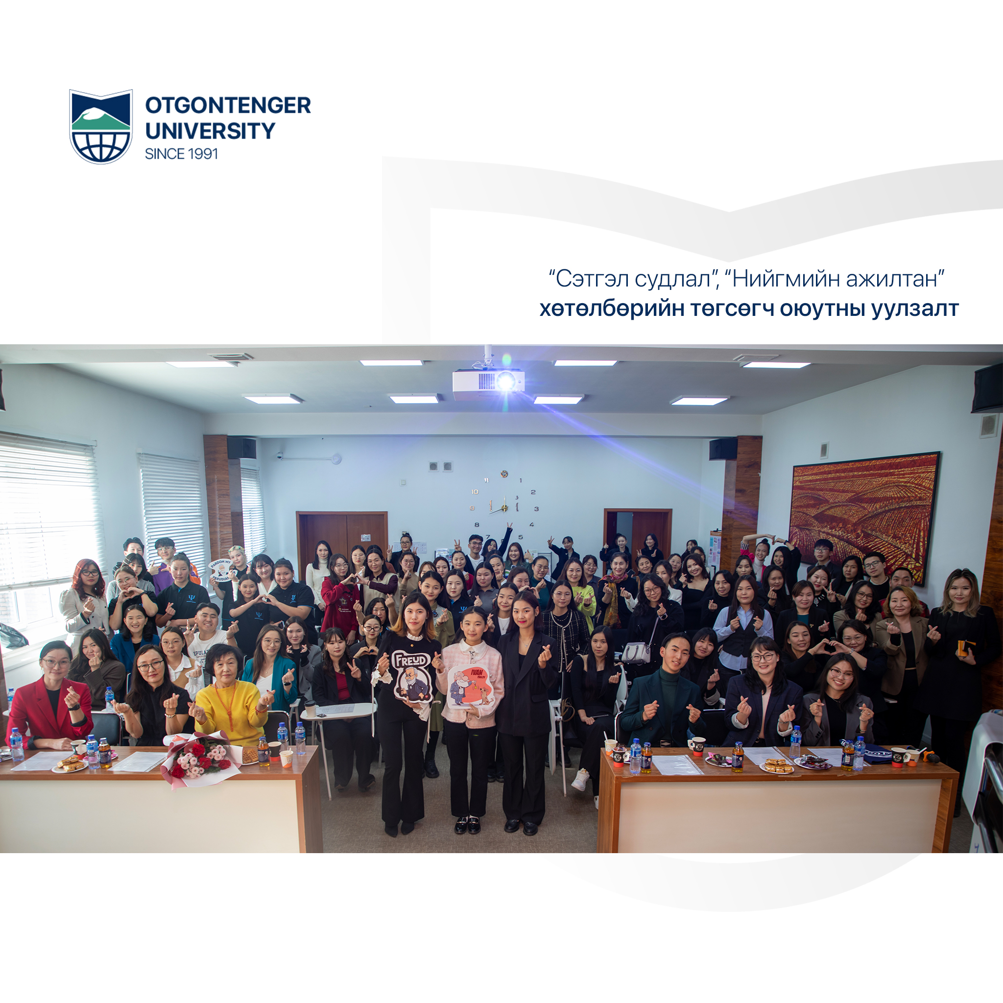 Отгонтэнгэр их сургуулийн сэтгэл судлал хөтөлбөр нь 2018 оноос эхлэн жил бүр тасралтгүй оюутан элсүүлж байна. Энэхүү уулзалт нь мэргэжилтнүүдийн зөвлөгөө өгөх хэсэг төгсөгч нарын туршлага хуваалцах үндсэн 2 хэсгээс бүрдэж,Монголын сэтгэл зүйчдийн нийгэмлэгийн тэргүүн Ш.Батсүх, сэтгэл судлалын үндэсний төвийн гүйцэтгэх захирал, сэтгэл судлаач Б.Ууганцэцэг, сэтгэл судлалын үндэсний төвийн зөвлөгөөний албаны дарга Г.Отгонцэцэг болон тус байгууллагын зөвлөгөөний албаны сэтгэл судлаач А.Энхжавхлан нар сэтгэл зүйн зөвлөгөө өгөхөд анхаарах зүйлс, шаардагдах мэргэжлийн мэдлэг, ур чадвар, мөн сэтгэл судлалын орчин үеийн чиг хандлага болон мэргэжлийн ур чадварын талаар хэлэлцүүлж оюутан болон төгсөгч нарт мэргэжлийн мэдлэгийн хүрээнд том дэмжлэг үзүүллээ. Дараагийн хэсэгт төгсөгчдийн төлөөлөл нар өөрсдийн ажиллаж буй салбарын онцлог, гадаад хэл сурах ач холбогдол болон мэргэжлийн ур чадвар, оюутан суралцагч нарт цаашид анхаарах, үр дүнтэй суралцах талаар өөрсдийн туршлагыг хуваалцсан юм. "Сэтгэл судлал" хөтөлбөрийн төгсөгч, Хөгжлийн бэрхшээлтэй хүүхдийн сэргээн засах хөгжлийн төвийн сэтгэл судлаач Н.Мөнхзолбоо, "хөгжлийн бэрхшээлтэй хүүхэд, гэр бүлтэй ажиллах" онцлог сэдвээр, Боловсролын салбарт сэтгэл судлаачаар ажиллаж буй туршлагын талаар ЕБС-ийн 127-р сургуулийн боловсролын сэтгэл судлаач С.Толхын, Хэрэглээний салбарт ажиллаж буй туршлагыг төгсөгч Б.Одончимэг, Сэтгэл судлалын үндэсний төвийн сэтгэл судлаач Б.Буянжаргал "Суралцах хугацаандаа анхаарах" зөвлөмжийн талаар тус тус өөрийн мэдлэгээсээ хуваалцлаа.
