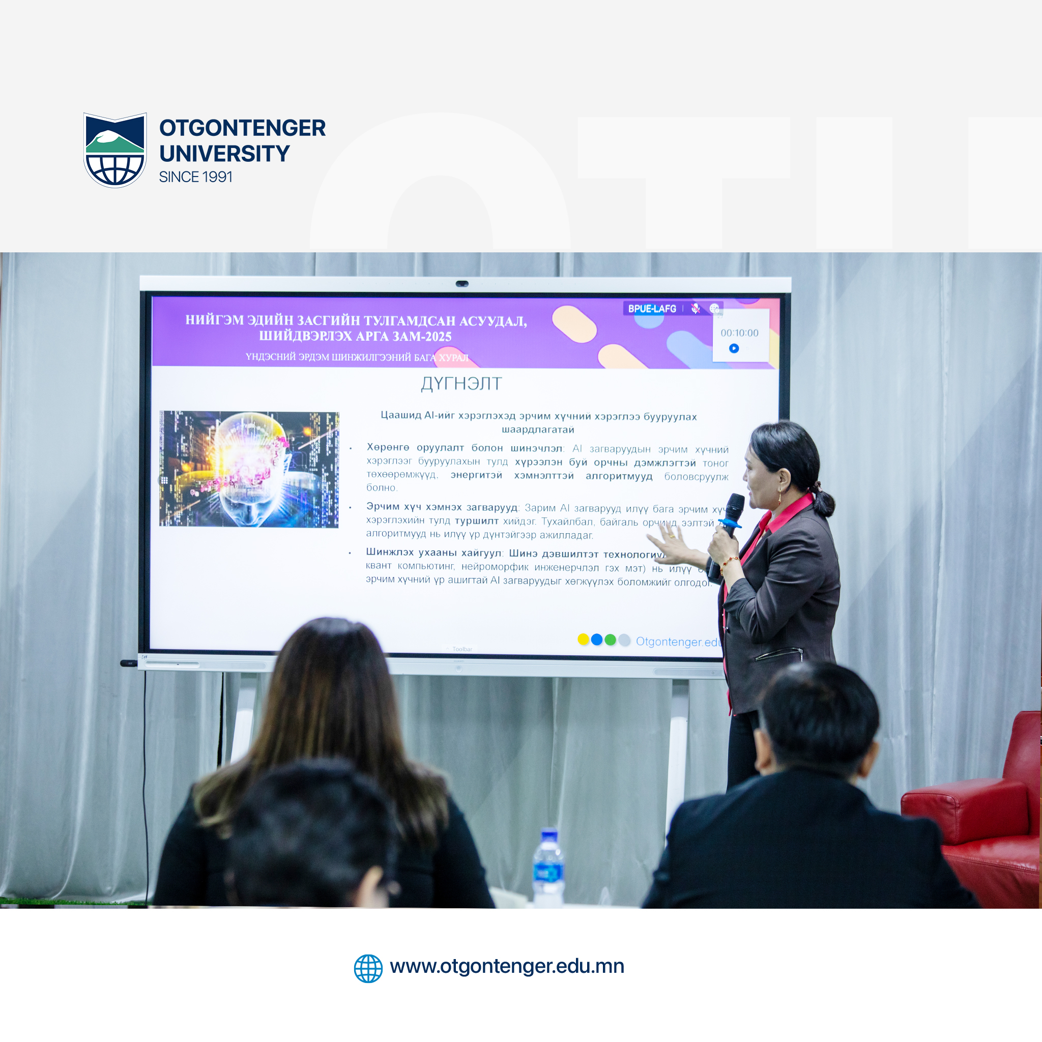 Энэ жилийн “Нийгэм, эдийн засгийн тулгамдаж буй асуудал ба шийдвэрлэх арга зам-2025” үндэсний хэмжээний эрдэм шинжилгээний хурал нь Эдийн засаг, хууль, нийгмийн ухааны төлөөллүүд нэг дор цугларч, олон өнцгөөс тулгамдаж буй асуудлыг дэвшүүлэн тавьж, шийдлийн хувилбаруудыг нээлттэй хэлэлцсэн нь шинэлэг онцлогтой байлаа.