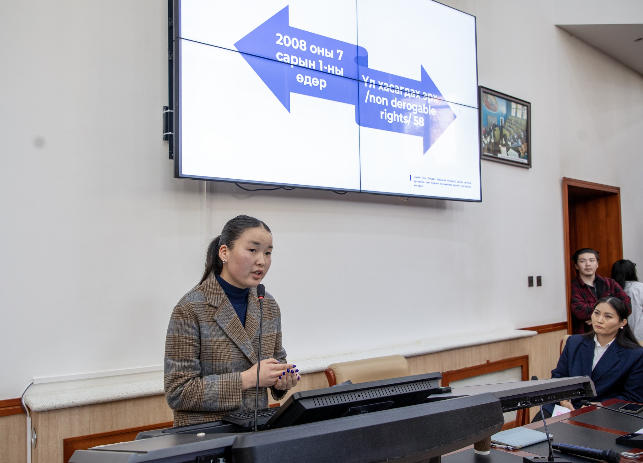 Улсын эрх-111 сэдэвт ЭШХ-ыг Хүний эрхийг хангах төрийн үүрэг, Хүний эрхийг хангахад иргэний нийгмийн оролцоо, Бүс нутгийн хүний эрхийн төлөв, ХХ зуунд хүний эрхийг бататгасан түүхэн ололт, Төрийн эрх мэдлийн хяналт тэнцвэр ба хүний эрх, Үндэсний аюулгүй байдал ба хүний эрх, Онц байдал ба хүний эрх, Хэвлэлийн эрх чөлөө агуулгаар тодорхойлон зарлаж, 3 судлаач болон 3 оюутны шилдэг бүтээлийг шалгаруулан хэлэлцүүллээ.