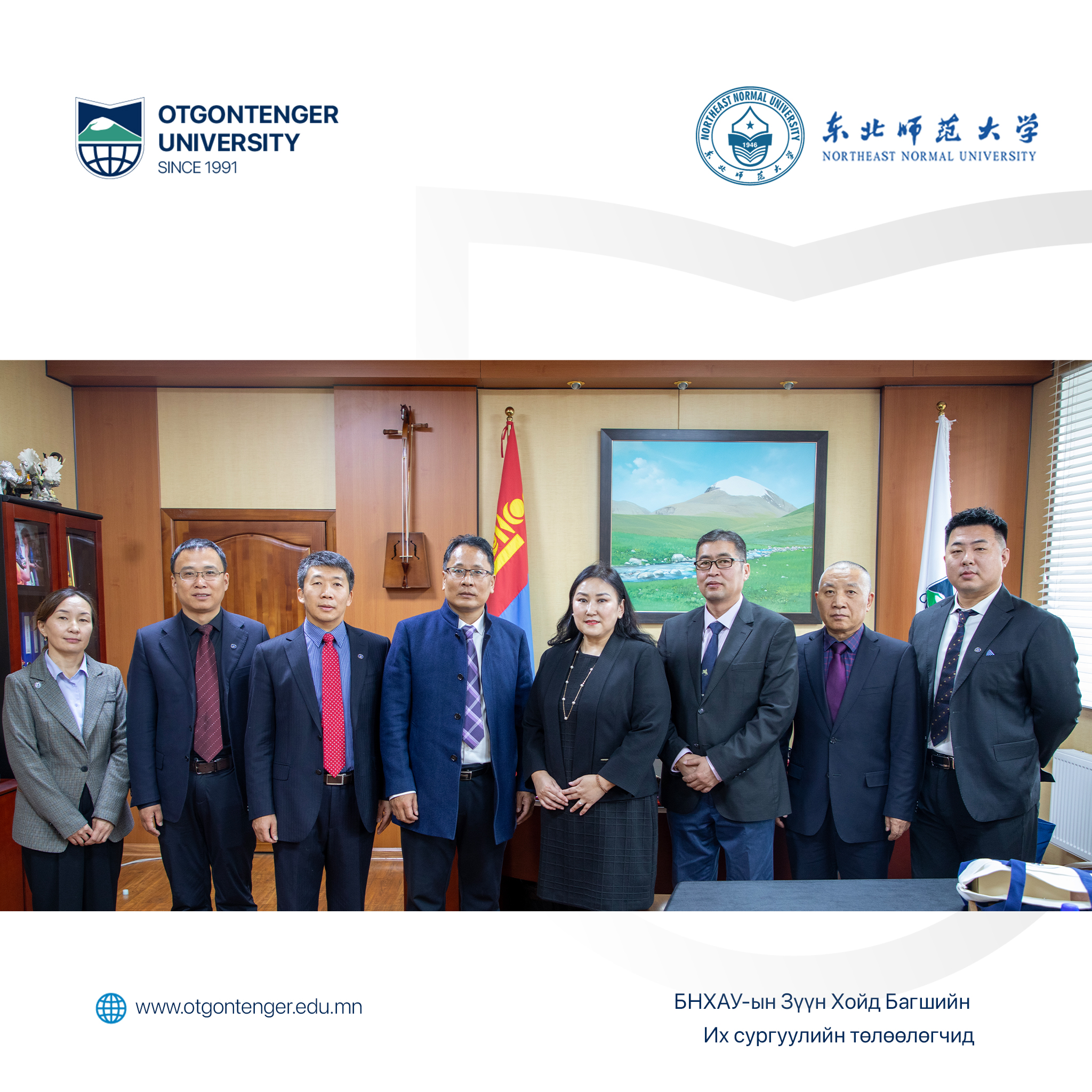 Зүүн Хойд Багшийн Их сургуулийн дэд захирал Пан Лишэн, Олон улсын хятад судлалын сургуулийн захирал Сиа Лиаоюань, Олон улсын хамтын ажиллагаа, солилцооны албаны дэд дарга Ван Сиаобо, Олон улсын хамтын ажиллагаа, солилцооны албаны эрхлэгч Лин Зиняо, МУБИС-ийн харьяа Күнзийн институтын захирал Жай Дайшэн нарын бүрэлдэхүүнтэй зочдыг Отгонтэнгэр Их сургуулийн ректор Н.Энхзаяа, Сургалтын нэгдсэн албаны дарга Л. Мягманхүү нар хүлээн авч, Отгонтэнгэр их сургуулийг танилцуулан хоёр сургуулийн хамтын ажиллагааны талаар санал солилцов.