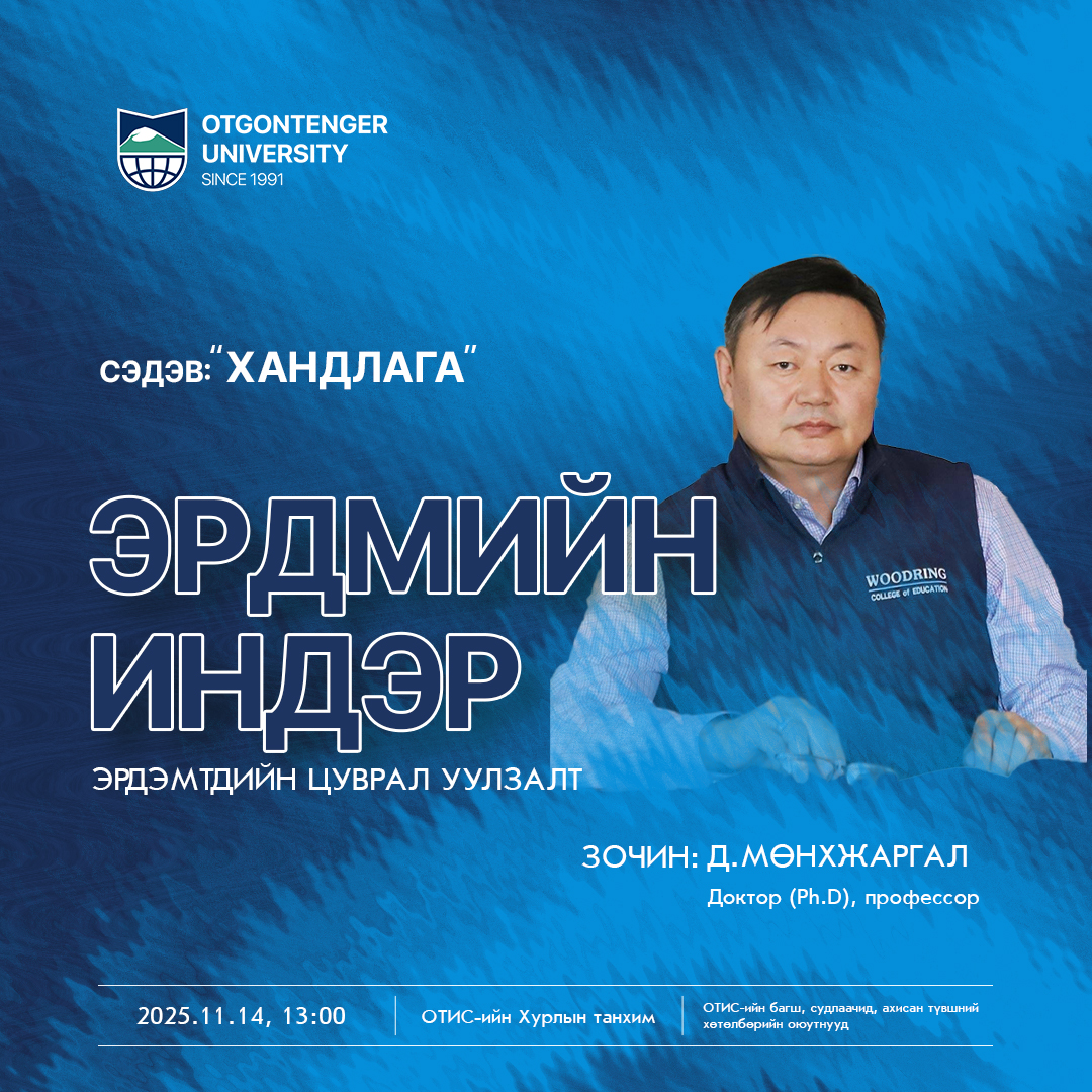 Отгонтэнгэр их сургуулиас багш, судлаач, ахисан түвшний хөтөлбөрийн оюутнуудад зориулсан "Эрдмийн индэр" цуврал уулзалтыг зохион байгуулж байна.