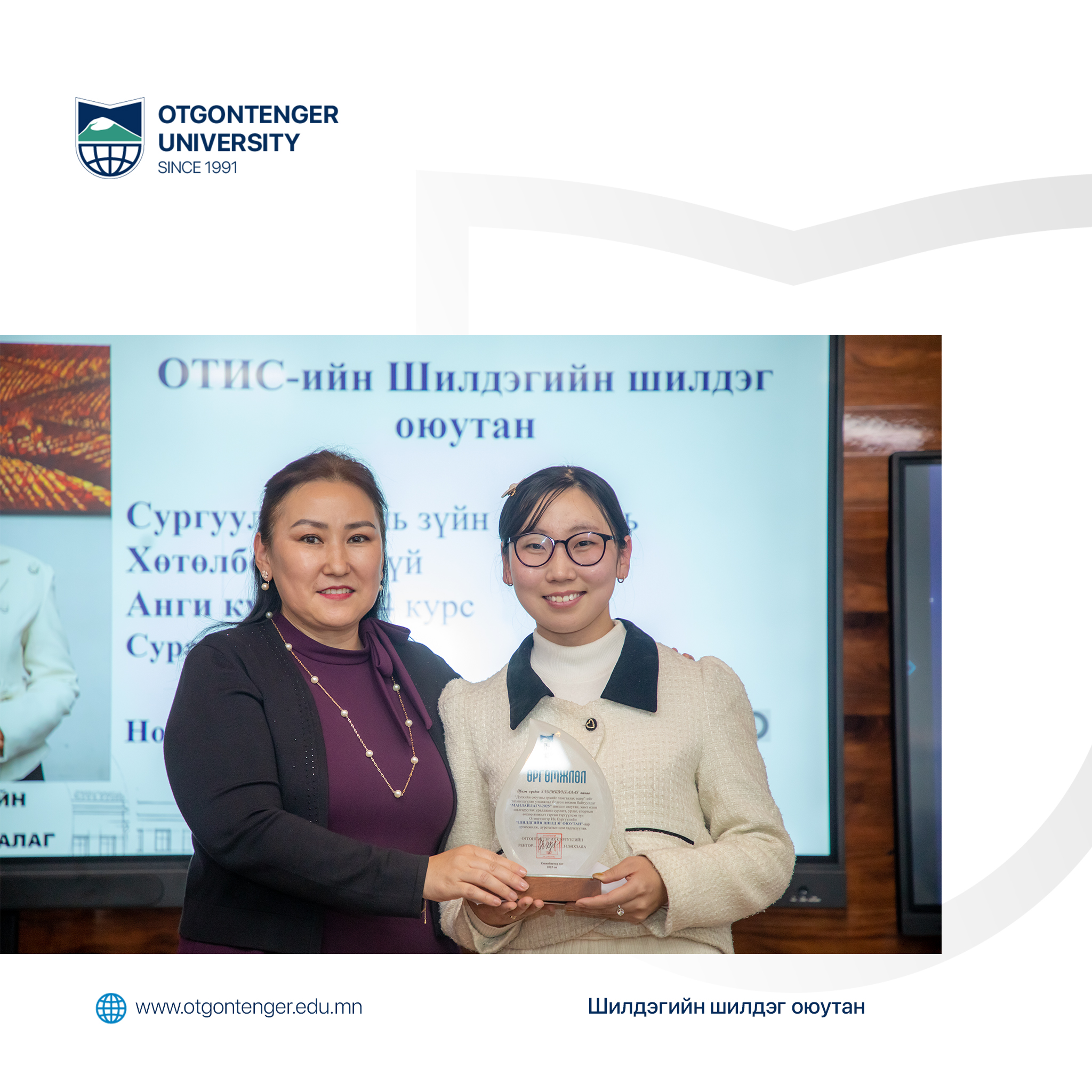 Манлайлагч судлаач оюутнаар Сэтгэл судлал хөтөлбөрийн оюутан Б.Ану-Үжин, Эрх зүй ангийн оюутан Б.Бат-Эрдэнэ